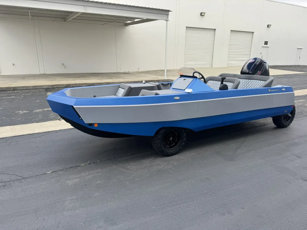 This custom blue-and-silver WaterCar EV with a two-tone grey interior isn’t just a head-turner — it’s the world’s first electric hybrid car/boat built for those who want freedom without compromise.