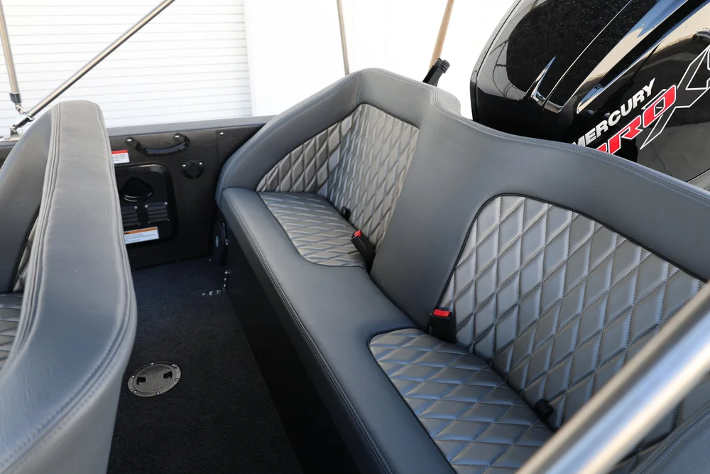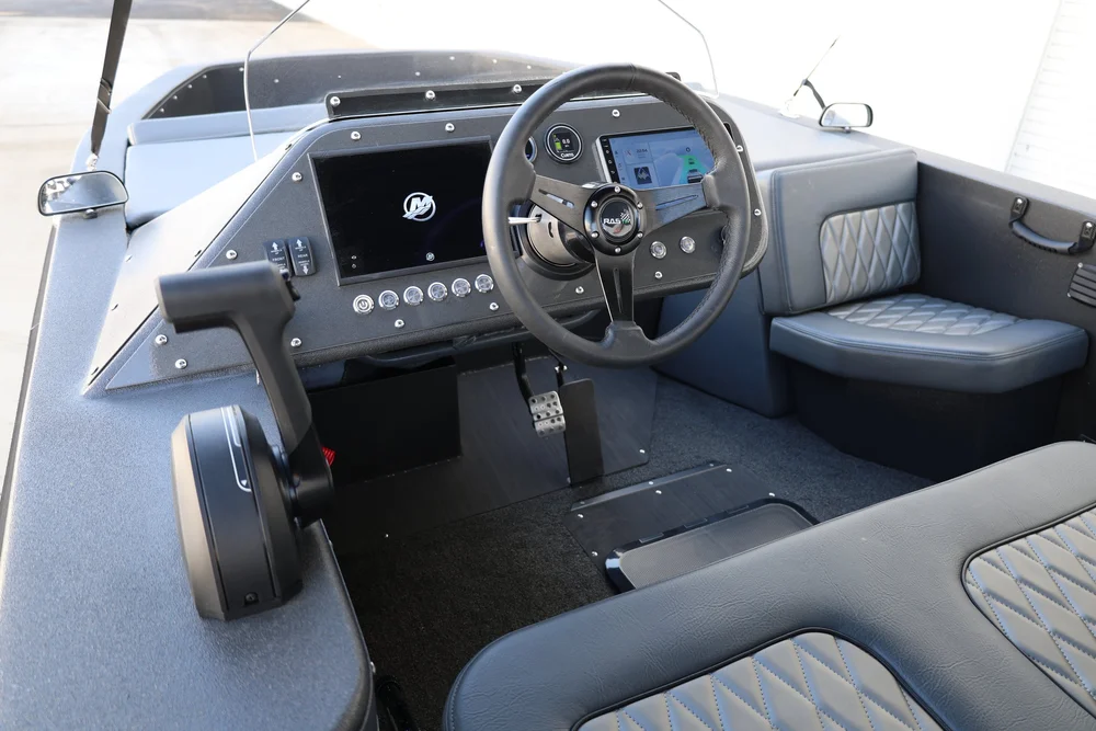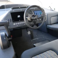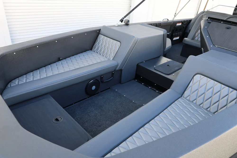 Introducing the custom black WaterCar EV with grey diamond-stitched interior.