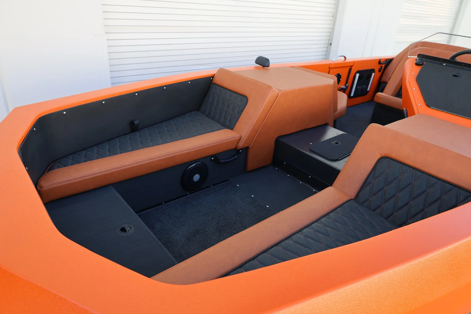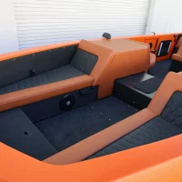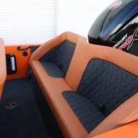 Bold and unmistakable, this WaterCar EV pairs a bright orange exterior with premium chestnut seating and black diamond-stitched panels for a striking, modern look. Built for both land and water, it delivers smooth electric performance with rugged utility baked into every detail.