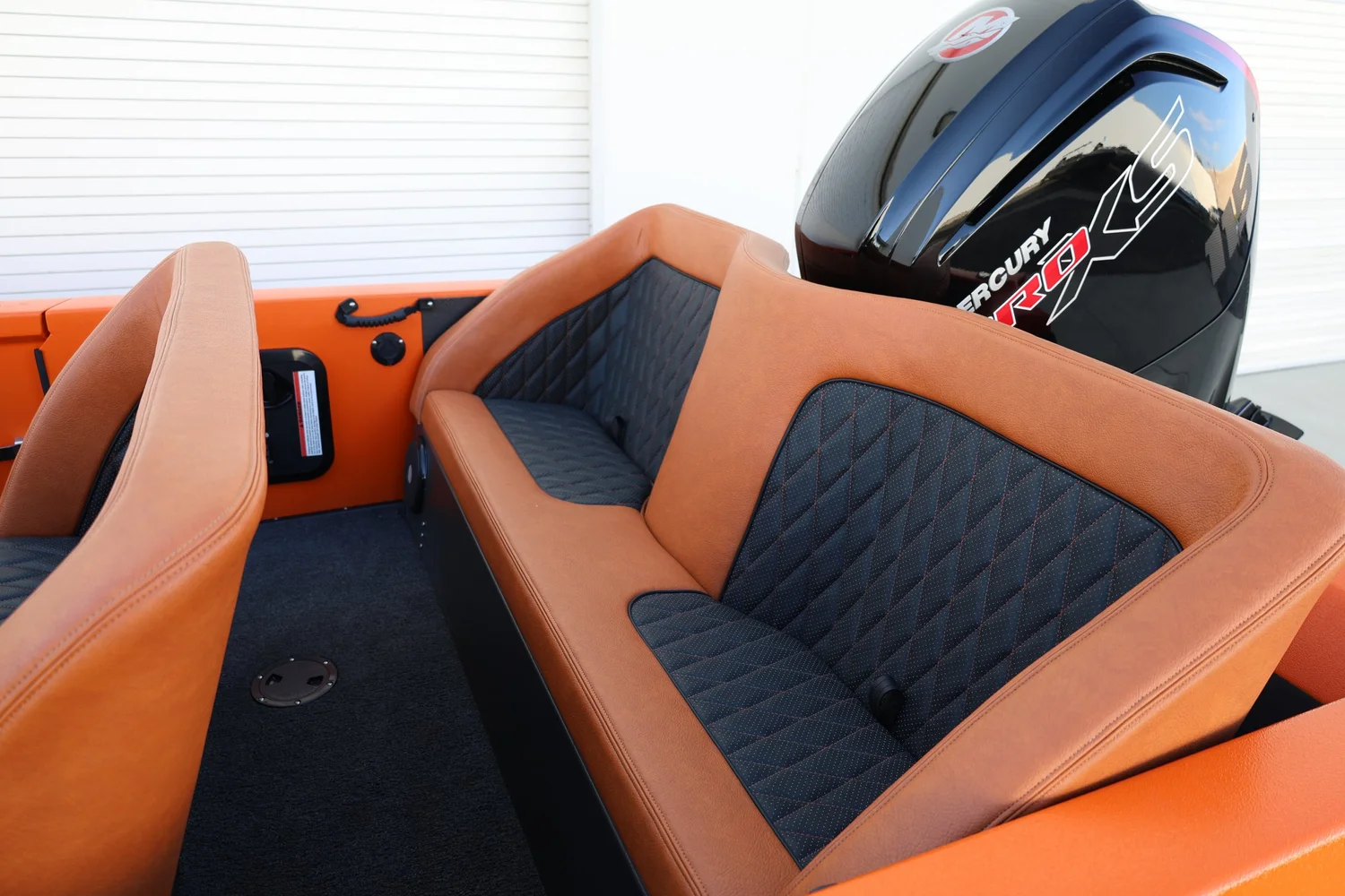 - Orange exterior with chestnut and black diamond-stitched interior.